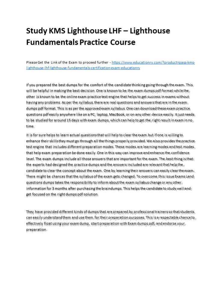 Title: Study KMS Lighthouse LHF – Lighthouse Fundamentals Practice Course