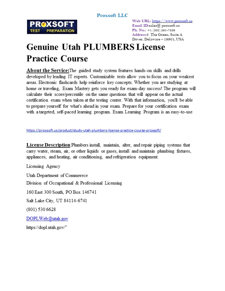 Genuine Utah PLUMBERS License Practice Course PowerPoint PPT Presentation