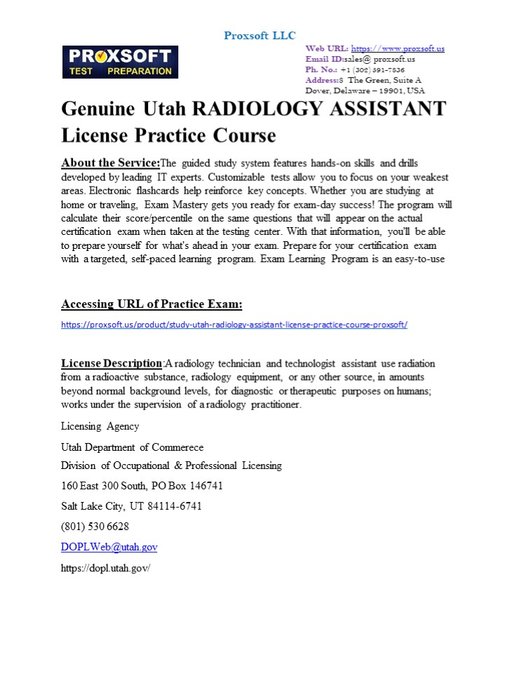 Title: Genuine Utah RADIOLOGY ASSISTANT License Practice Course