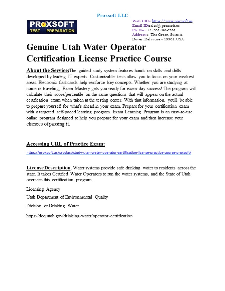 Title: Genuine Utah Water Operator Certification License Practice Course