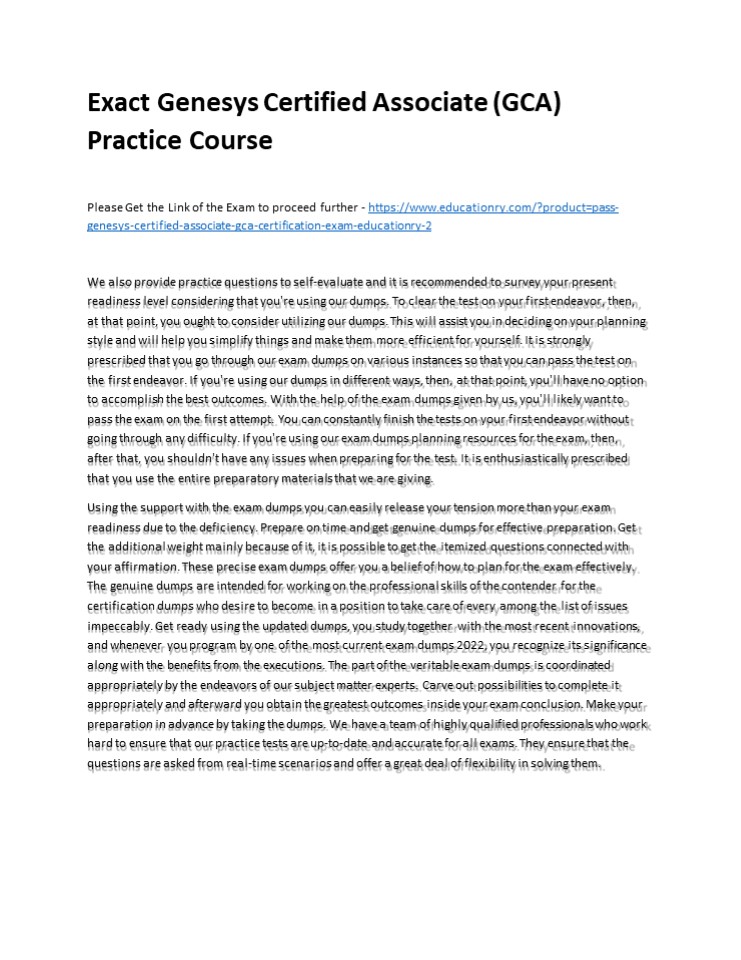 Title: Exact Genesys Certified Associate (GCA) Practice Course