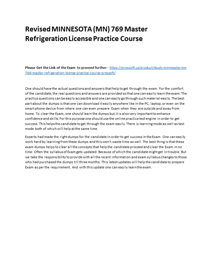 Title: Revised MINNESOTA (MN) 769 Master Refrigeration License Practice Course