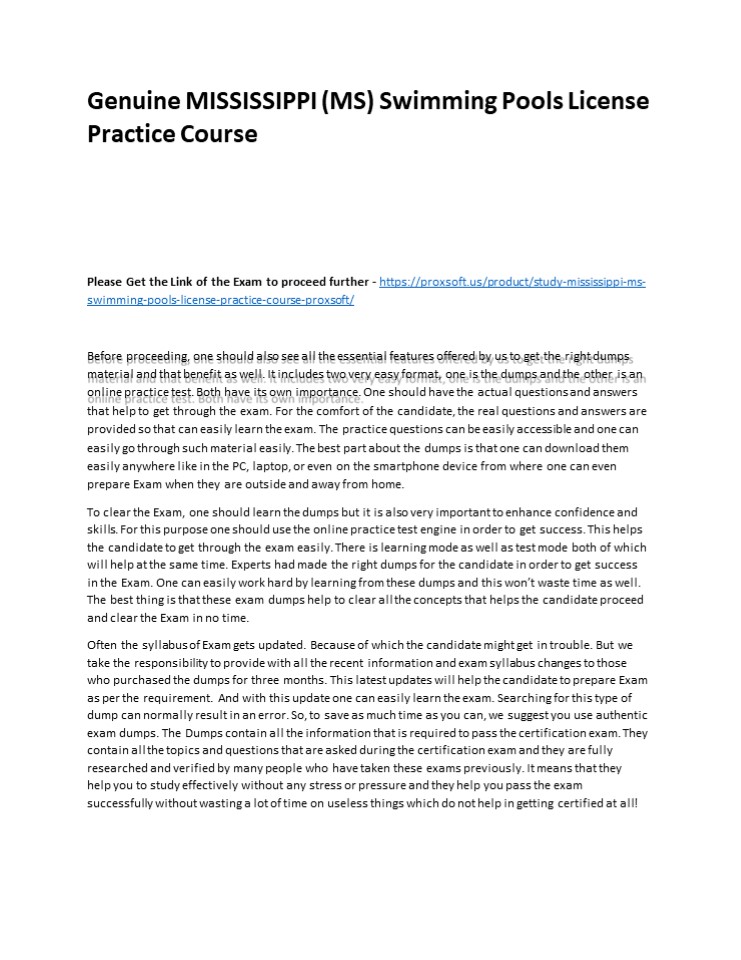 Title: Genuine MISSISSIPPI (MS) Swimming Pools License Practice Course (1)