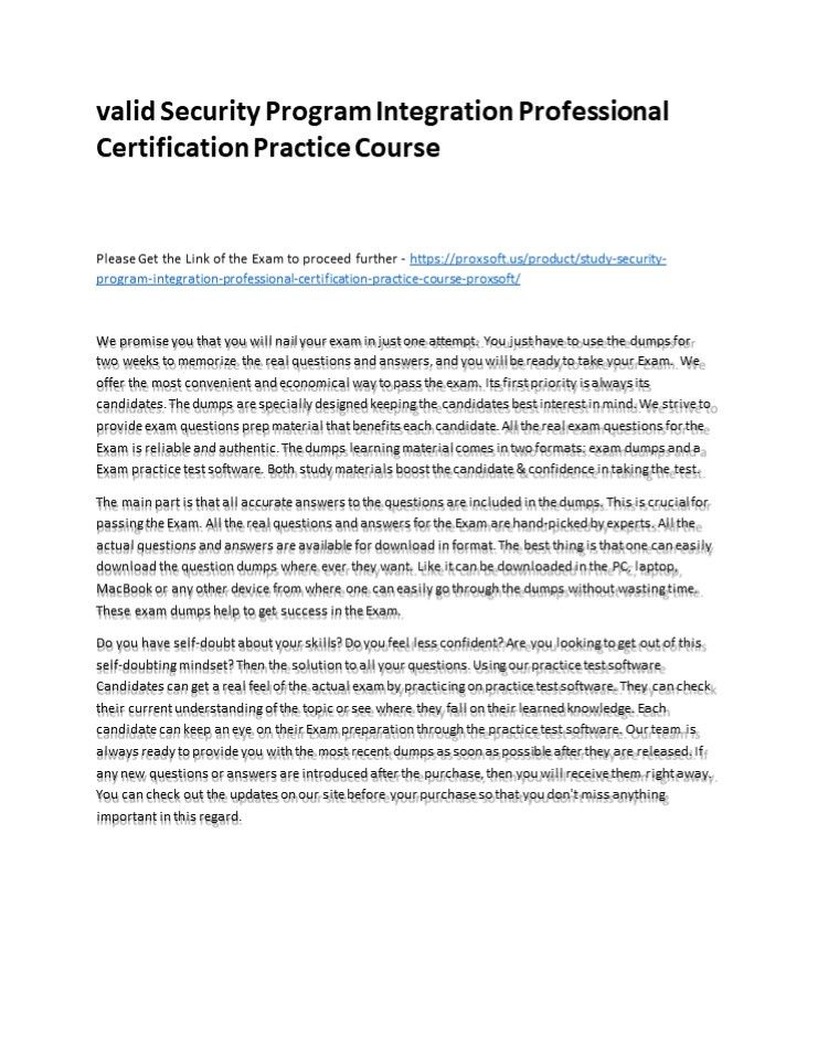 Title: valid Security Program Integration Professional Certification Practice Course