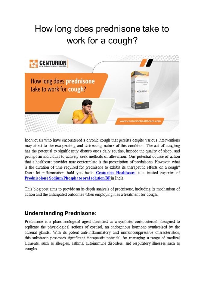 Title: Prednisolone Sodium Phosphate Syrup Manufacturer | Centurion Healthcare