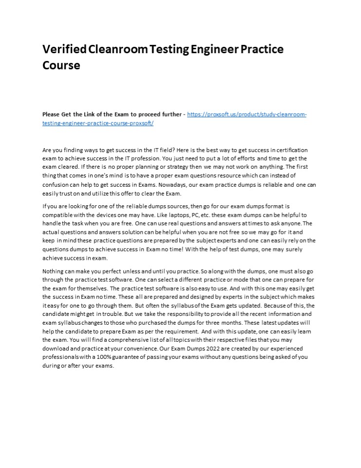 Verified Cleanroom Testing Engineer Practice Course PowerPoint PPT Presentation