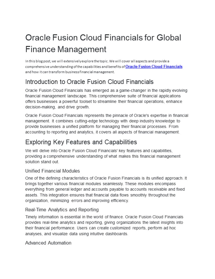 Title: Oracle Fusion Cloud Financials for Global Finance Management