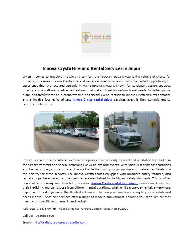 Title: Innova Crysta Rental Service Jaipur