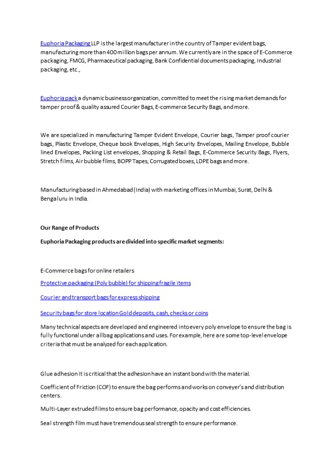 films, BOPP Tapes, Corrugated boxes, LDPE bags
