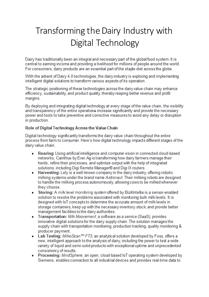Transforming the Dairy Industry with Digital Technology PowerPoint PPT Presentation