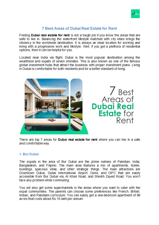 Title: 7 Best Areas of Dubai Real Estate for Rent