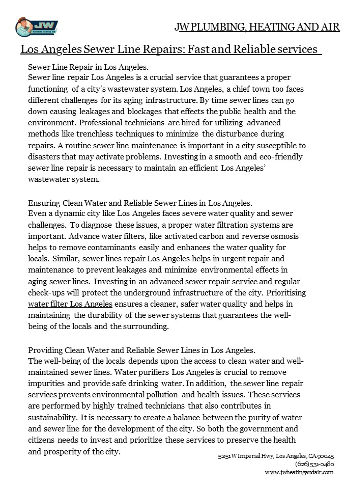 1JW PLUMBING, HEATING AND AIR Los Angeles Sewer