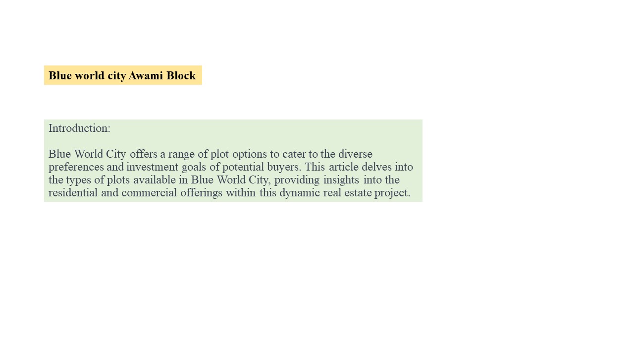 Title: Blue world city Awami Block