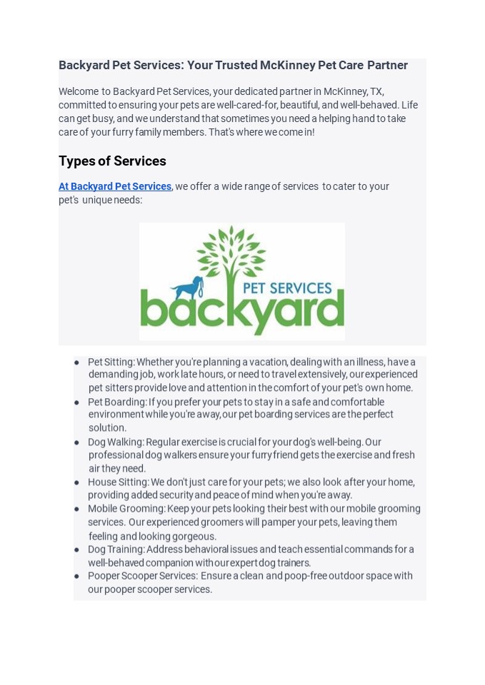 Title: Backyard Pet Services: Your Trusted McKinney Pet Care Partner