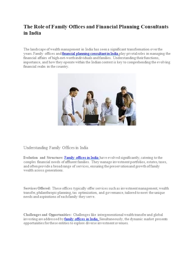Title: Family Offices and Financial Planning Consultants in India