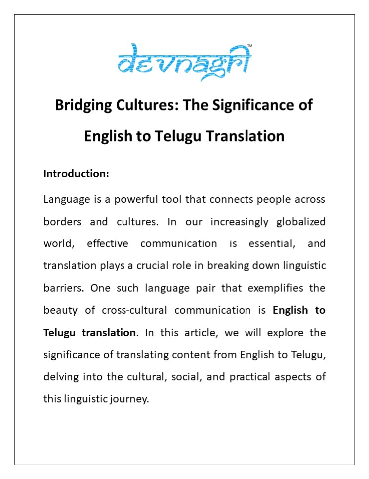 Title: Bridging Cultures: The Significance of English to Telugu Translation