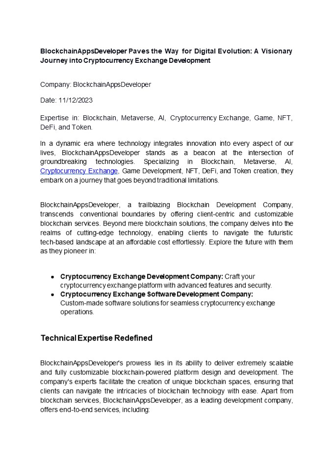 Title: BlockchainAppsDeveloper Paves the Way for Digital Evolution: A Visionary Journey into Cryptocurrency Exchange Development