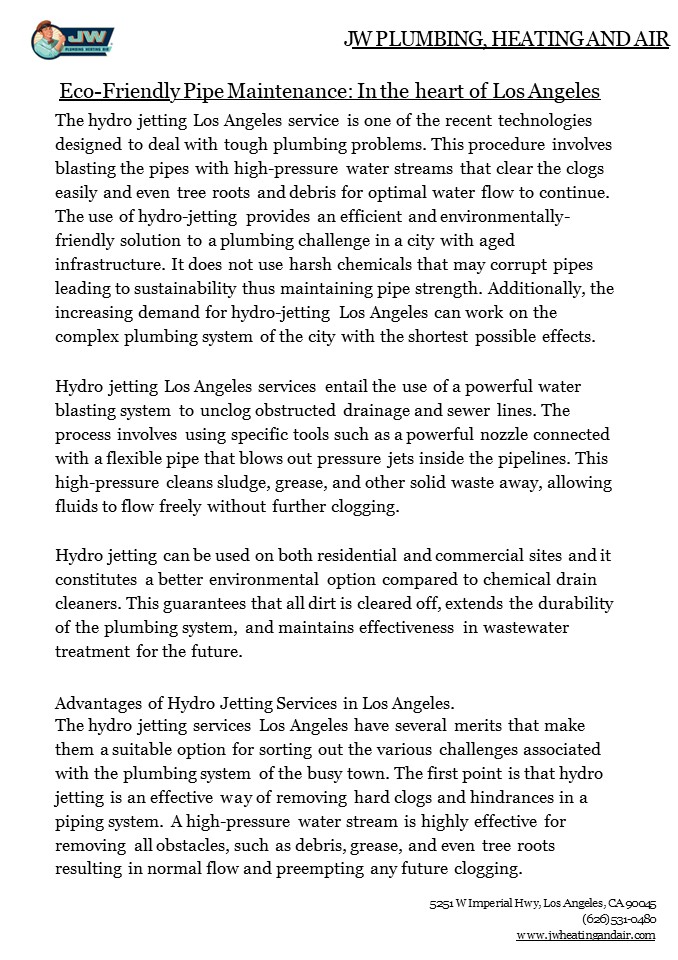 Services in Los Angeles. The hydro jetting