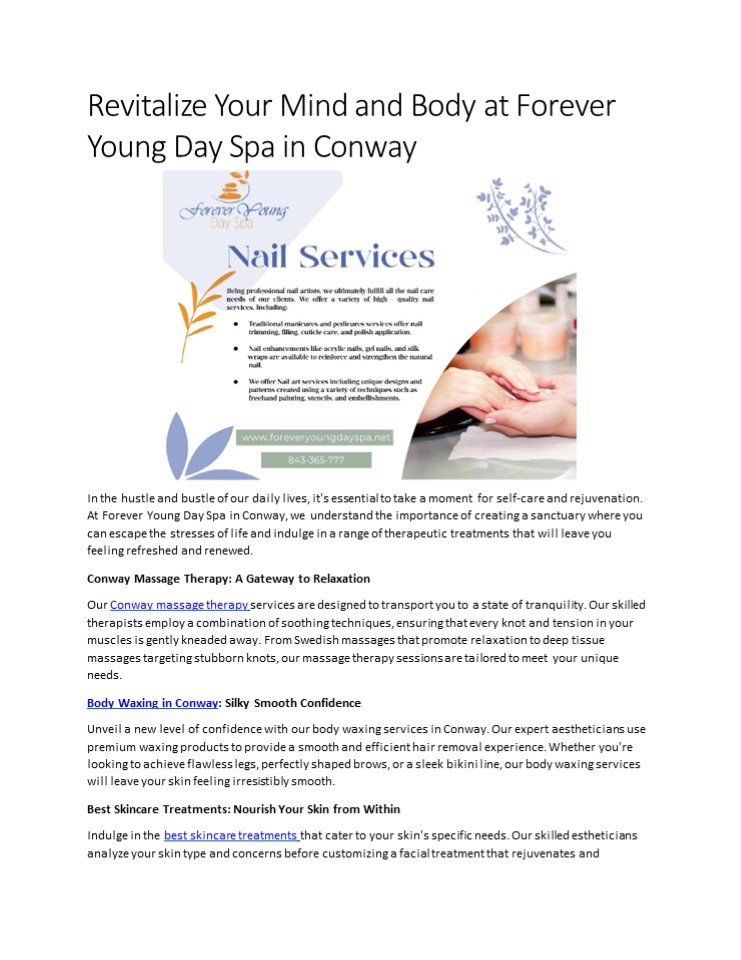 Title: Revitalize Your Mind and Body at Forever Young Day Spa in Conway