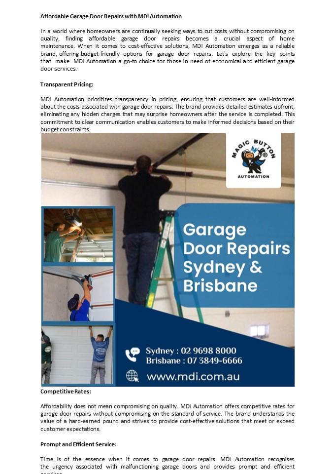 Title: Affordable Garage Door Repairs with MDI Automation