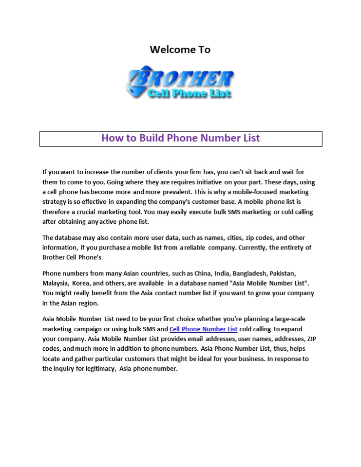 your company. Asia Mobile Number List provides