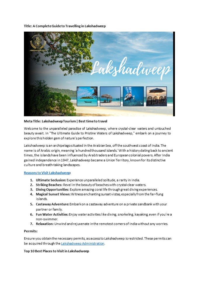 Title: A COMPLETE GUIDE TO TRAVELLING IN LAKSHADWEEP