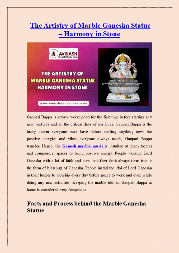 Title: The Artistry of Marble Ganesha Statue – Harmony in Stone