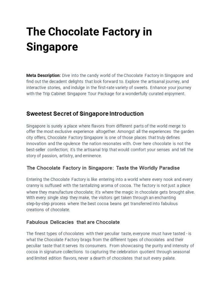 Singapore In conclusion, the Chocolate Factory in