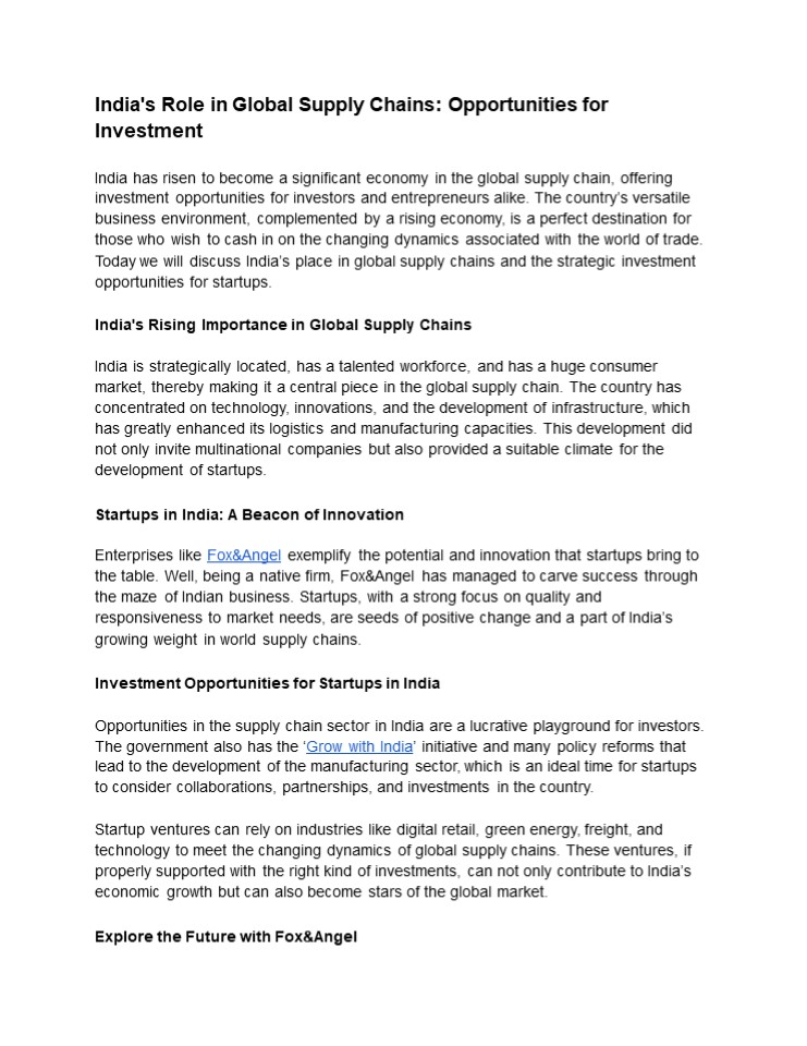 Title: Invest in India's Supply Chain Boom with Fox&Angel