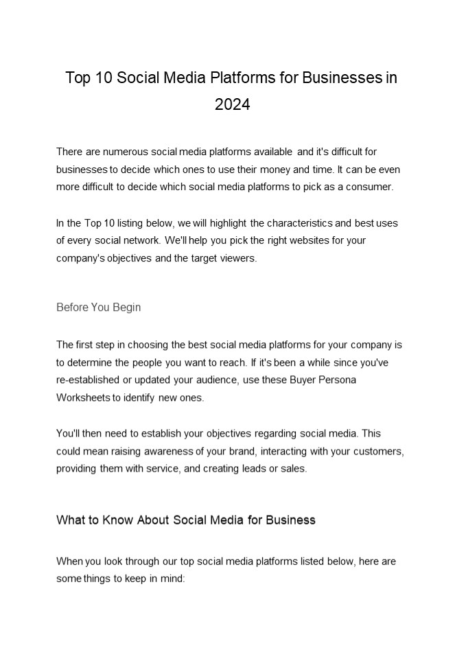 Title: Top 10 Social Media Platforms for Businesses in 2024