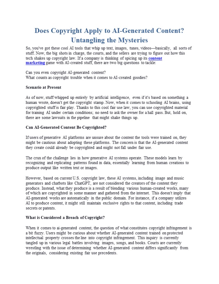 Title: Does Copyright Apply to AI-Generated Content? Untangling the Mysteries