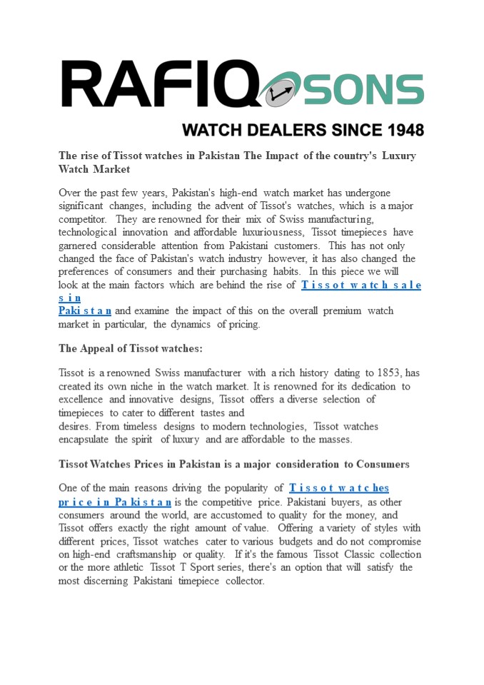 i s s o t w a tc h s a l e s i n Paki s t a n