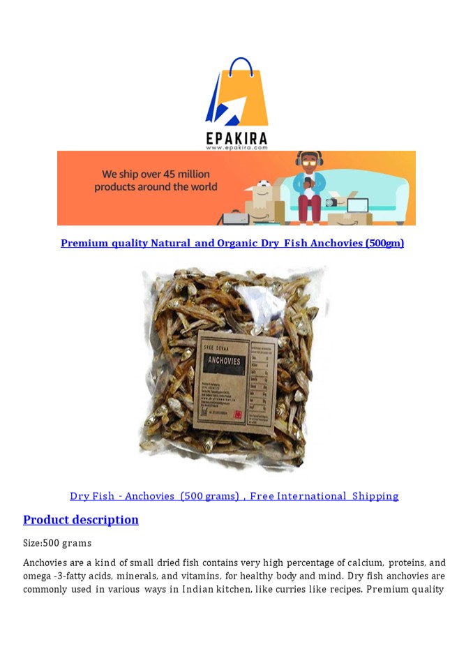 Title: Premium quality Natural and Organic Dry Fish Anchovies (500gm)