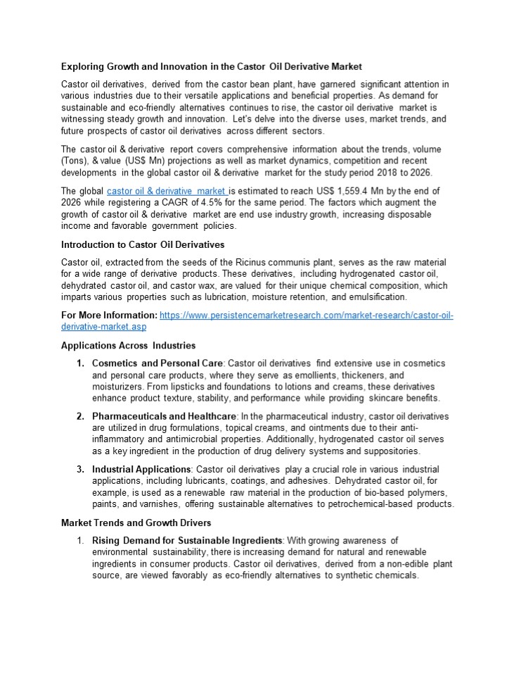 Castor Oil Derivative Market Trends Analysis PowerPoint PPT Presentation