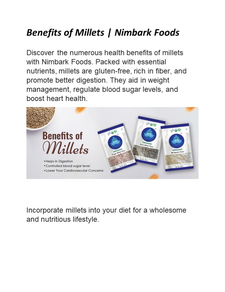 Benefits of Millets | Nimbark Foods PowerPoint PPT Presentation