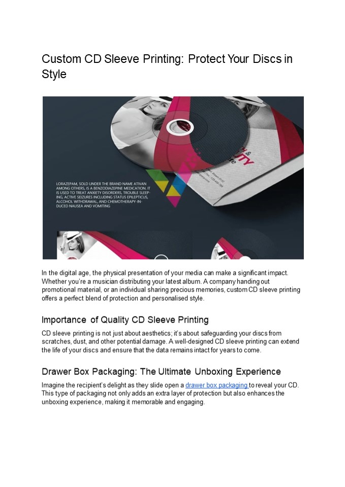 Title: Custom CD Sleeve Printing: Protect Your Discs in Style