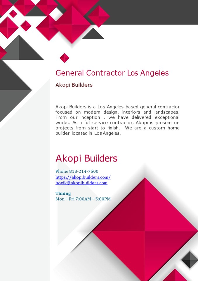 Akopi Builders Phone 818-214-7500 https//akopibui
