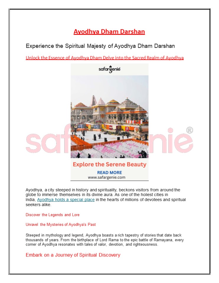 solace. Conclusion Ayodhya Dham Darshan is not
