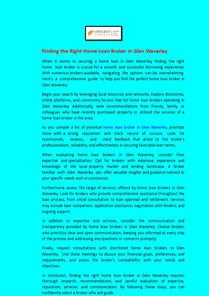 Title: Finding the Right Home Loan Broker in Glen Waverley