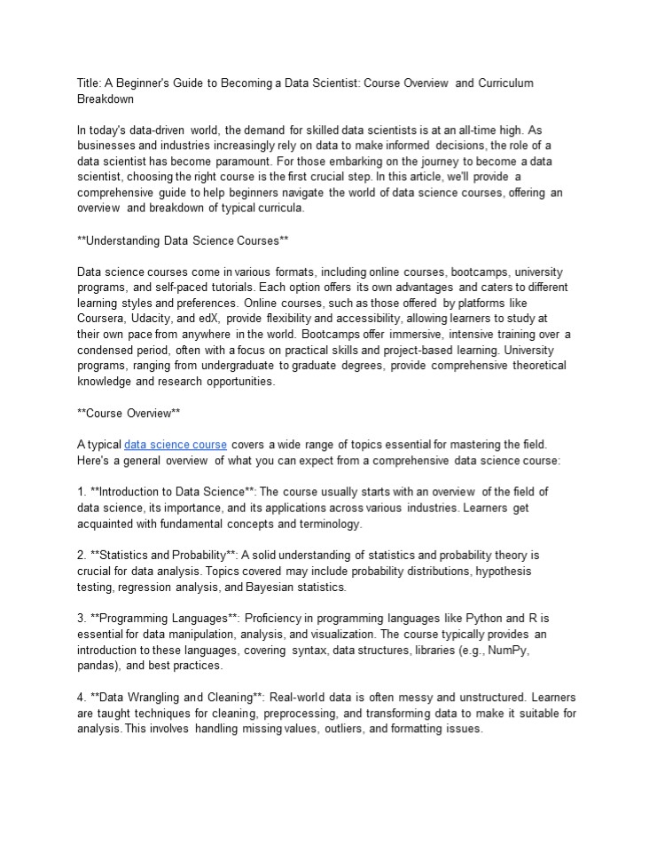 • When choosing a data science course, it's