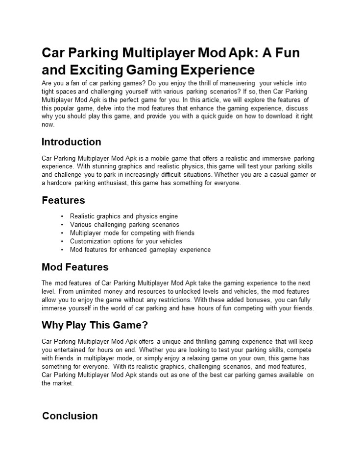 2In conclusion, Car Parking Multiplayer Mod Apk is