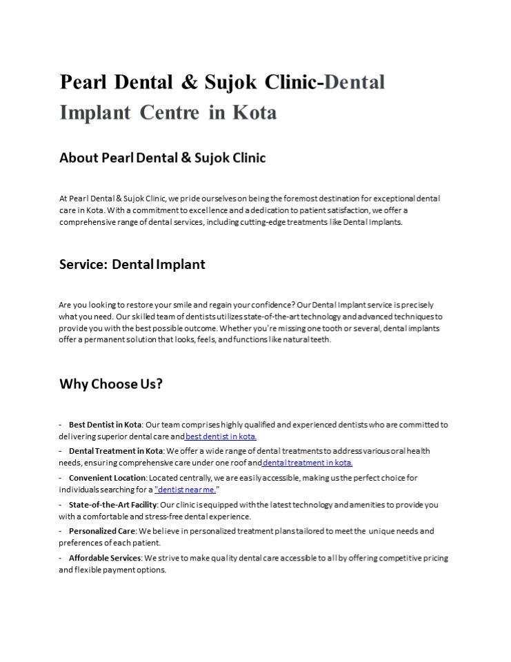 Title: Pearl Dental & Sujok Clinic-Dental Implant Centre in Kota