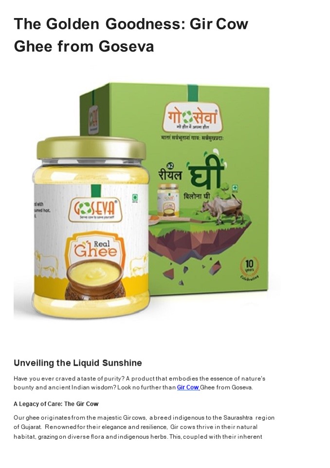 Title: The Golden Goodness: Gir Cow Ghee from Goseva