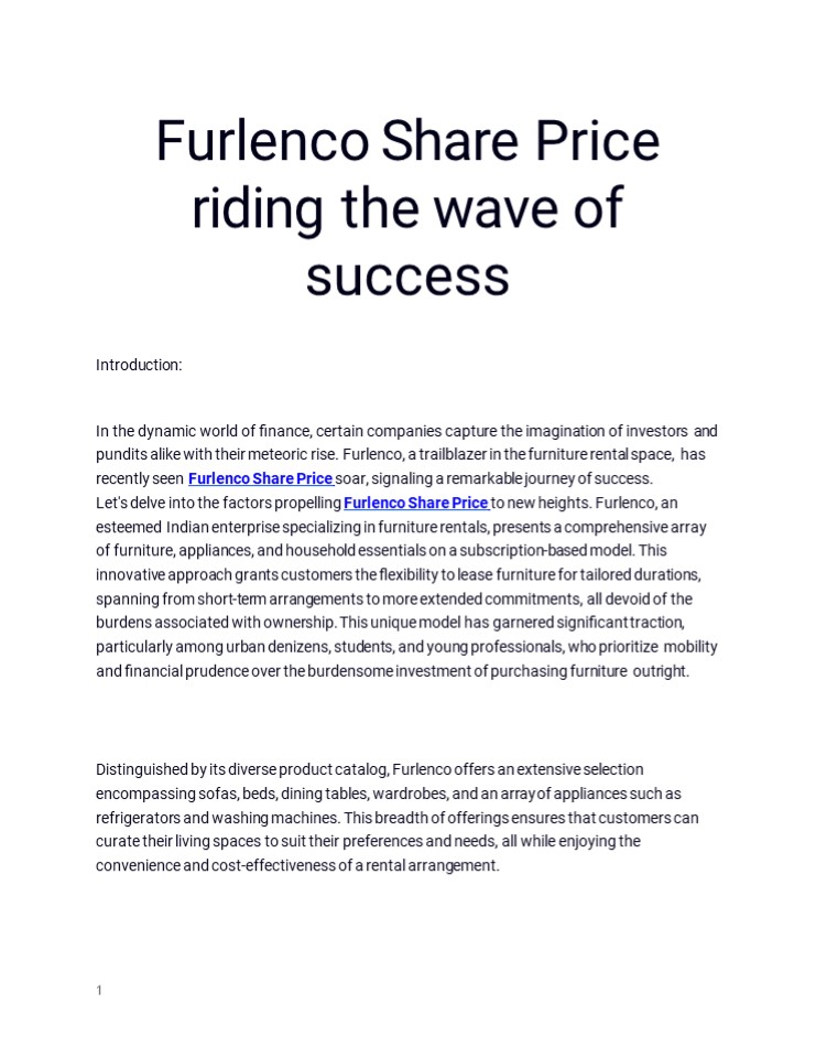 Furlenco Share Price to new heights. Furlenco, an
