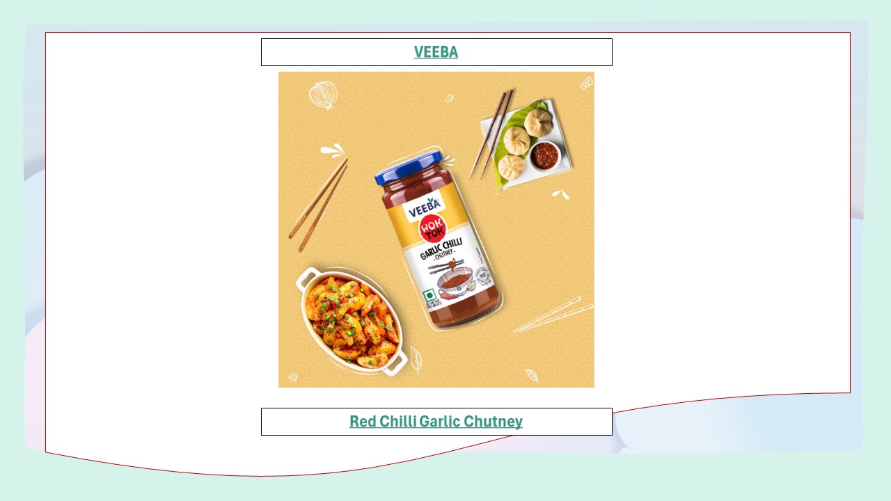 chilli garlic chutney from Veeba. This condiment