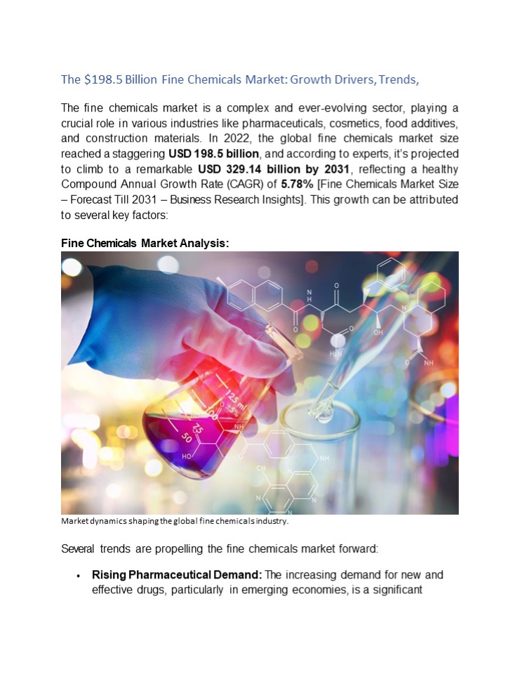 the evolving needs of various industries. - Fine Chemicals Market Revenue Growth