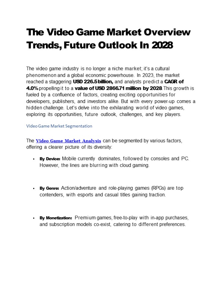 1The Video Game Market Overview Trends, Future