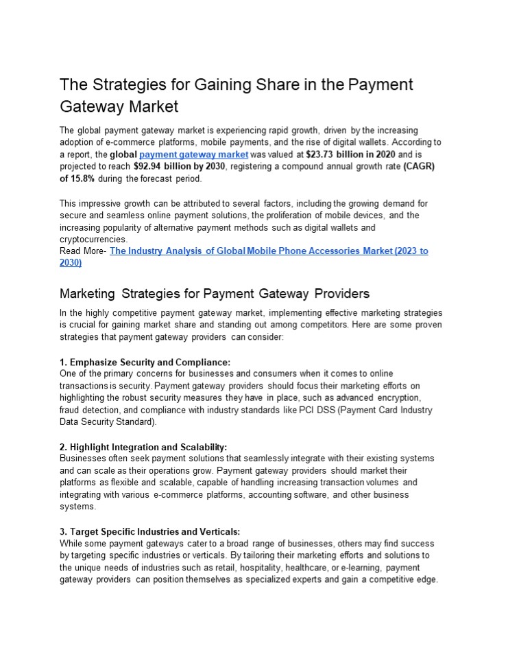Title: The Strategies for Gaining Share in the Payment Gateway Market