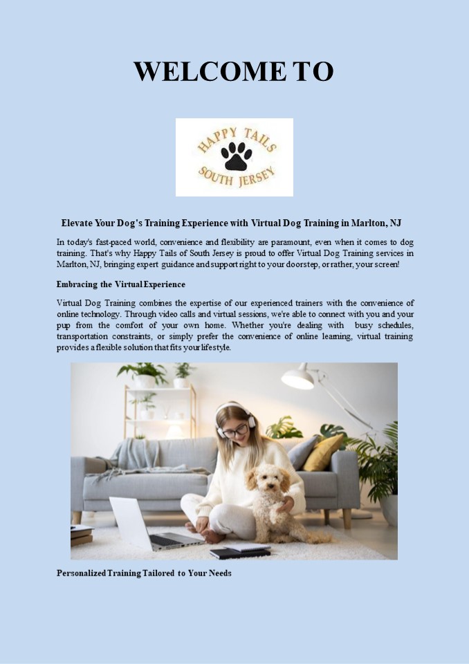 Virtual Dog Training in Marlton, NJ In today's