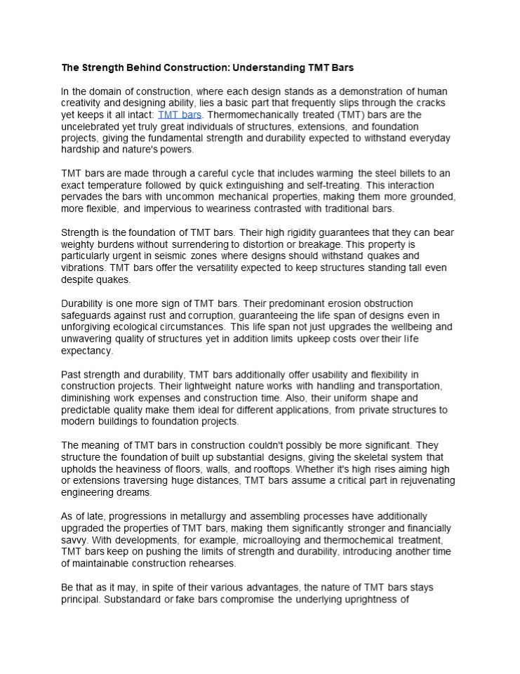 Title: The Strength Behind Construction: Understanding TMT Bars